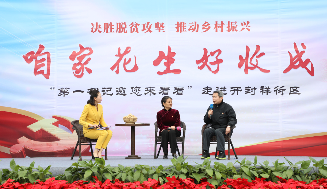 当天的直播过程中,100名来自祥符区基层的驻村第一书记们交流了各自所在单位的脱贫经验,开封市祥符区人民政府区长王彦涛推介了祥符花生,并将其交给新农村频道中原好礼的项目负责人,祥符区花生正式纳入“中原好礼”。