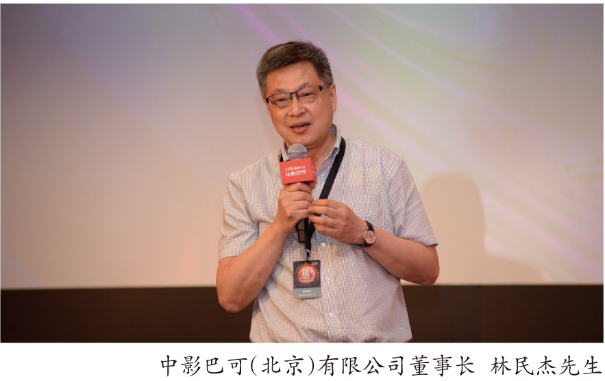 中影巴可(北京)有限公司总经理王红波先生在会上分享了中影巴可一路以来在合作伙伴支持下取得的成绩:2018年放映机和服务器全国市场占有率双双第一,并完美诠释了中影巴可“值·新主张”。
