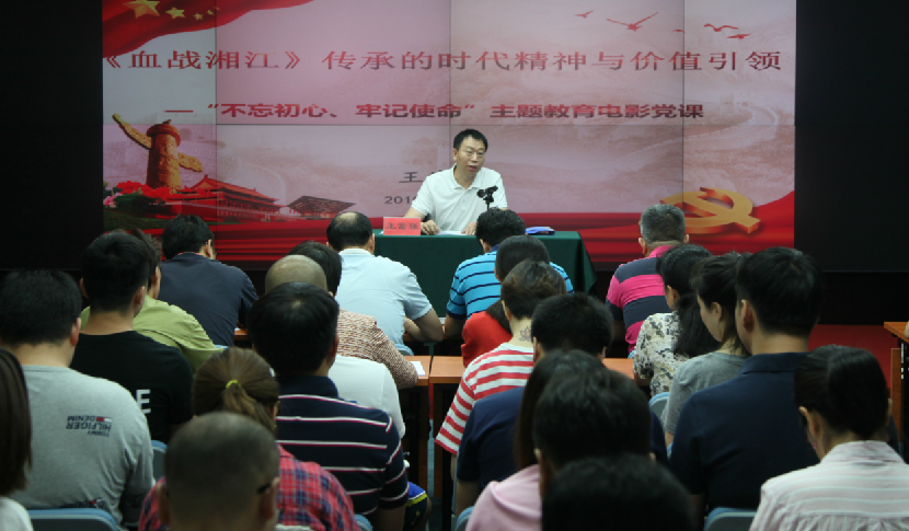7月5日,中心举办了“不忘初心、牢记使命”主题教育专题电影党课。中心党总支书记、中心主任王富强同志结合工作实际以《<血战湘江>传承的时代精神与价值引领》为题给中心全体职工上了一堂“寓教于电影”的生动党课。中宣部第七指导组出席党课。