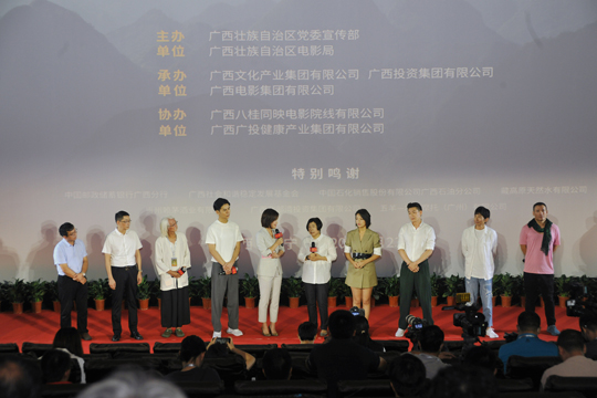首映礼上,影片主创登台分享了被黄文秀先进事迹所感动、感染、感召后,在剧本撰写和影片拍摄过程中的酸甜苦辣、所感所得。