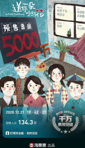 “映前看预售”,在即将上映的影片中,颇为抢眼的有《送你一朵小红花》、《温暖的抱抱》、《拆弹专家2》、《晴雅集》等,截至12月21日,预售票房分别为5132万、1477万、1633万、1892万。这些预售数字的意义,在猫眼专业版数据分析师刘振飞看来:“预售成绩是衡量一部影片是不是更好卖、是不是更热门的直接参考。”