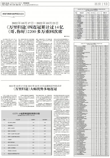 - 《万里归途》四连冠累计过14亿 《哥,你好》2200多万重回次席