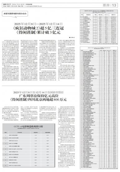CopyRight 2009-2025 @ All Rights Reserved.版权所有:《中国电影报》社 未经授权禁止复制或建立镜像欢迎到各地邮局订阅《中国电影报》(可破季订阅)邮发代号: 1-139《中国电影报》社 | 京ICP备19012024号-1京公网安备 11010802039568号互联网新闻信息服务许可证10120180021举报电话:010-62275441 举报邮箱:zgdyb2004@126.com