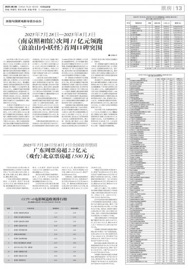 2025年第31周(7月28日-8月2日),暑期档热度持续攀升,全国周票房达17.5亿元,环比增长5...