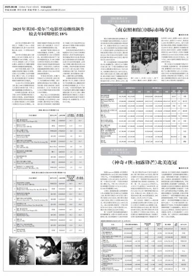 - 2025年英国-爱尔兰电影票房继续飙升 较去年同期增长18%