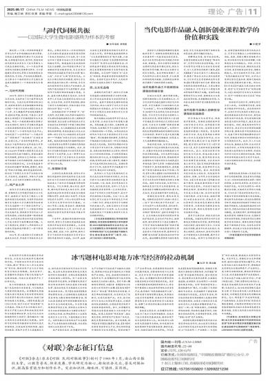 - 当代电影作品融入创新创业课程教学的价值和实践