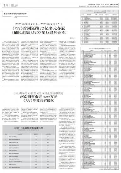 2025年第38周(9月15日-9月21日),新片上映提振观影热情,大盘飙升至14亿水平,较上周大幅...