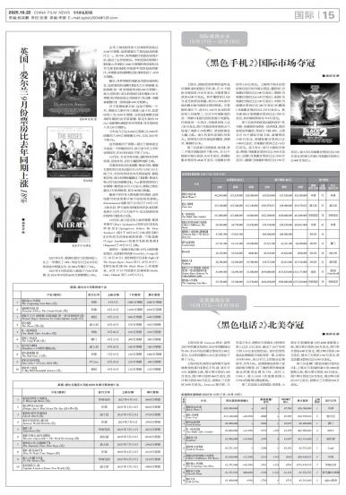 上周末,国际票房榜单的冠军是环球影业的《黑色手机2》,在71个国际市场收获1550万美元,全球首周末...