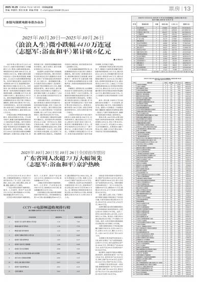 - 《浪浪人生》微小跌幅4410万连冠 《志愿军:浴血和平》累计破6亿元