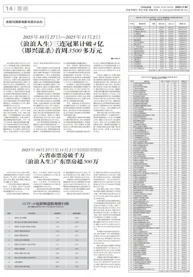CopyRight 2009-2025 @ All Rights Reserved.版权所有:《中国电影报》社 未经授权禁止复制或建立镜像欢迎到各地邮局订阅《中国电影报》(可破季订阅)邮发代号: 1-139《中国电影报》社 | 京ICP备19012024号-1京公网安备 11010802039568号互联网新闻信息服务许可证10120180021举报电话:010-62275441 举报邮箱:zgdyb2004@126.com