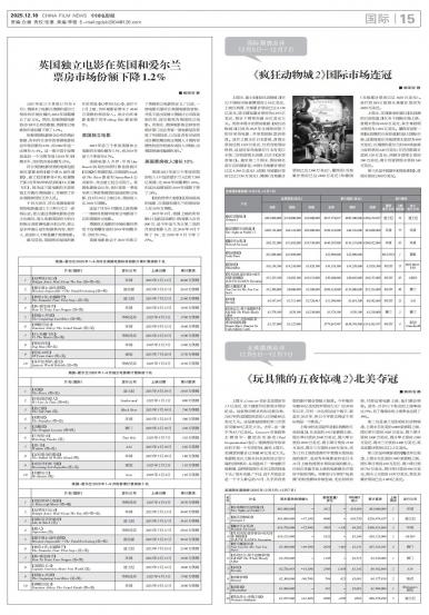 - 英国独立电影在英国和爱尔兰 票房市场份额下降1.2%