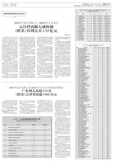 2026年第1周(2025年12月29日-2026年1月4日),元旦档新片密集登场,票房大盘最终锁定...